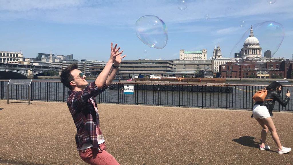 En route there, I ran through a crowd of oversized bubbles. Obviously, I had to pose with one.