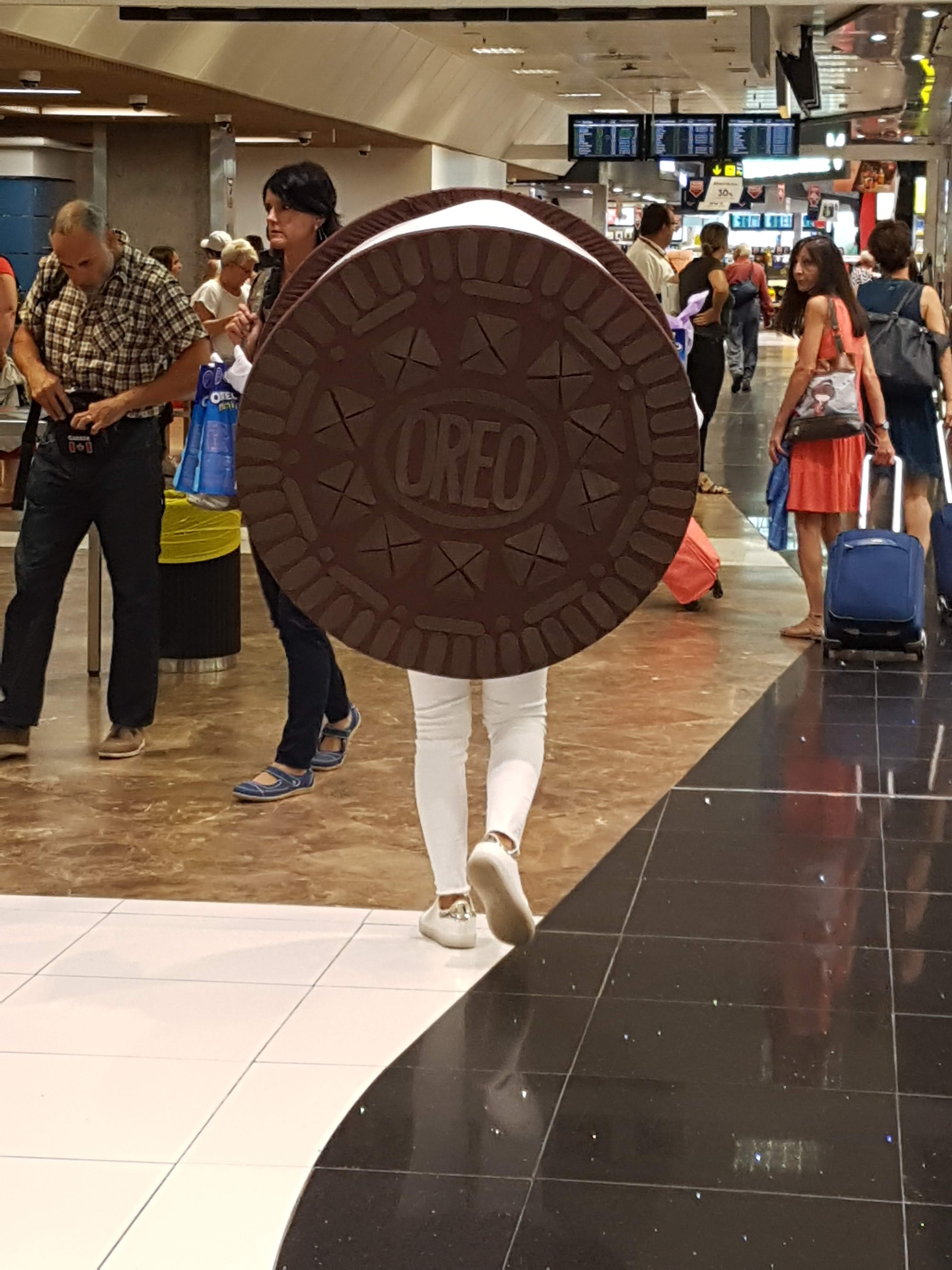 As for the walking, talking Oreo pictured above…well, isn’t that self-explanatory? He was at the airport on our return trip, promoting Oreos. I helped myself to a ridiculous number of free samples. Who wouldn’t?