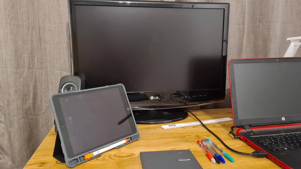 Despite its huge bezels, my 27-inch monitor more often functions as a second screen than a TV, which has been invaluable for dedicating a whole display to screen-sharing, making the picture much easier for the kids to view. I did have to adjust the screen resolution, meaning the setup looks a little janky, but it works – and that’s the main thing. These days, you can buy dead cheap monitors to connect to your device these days: https://amzn.to/37gKmJX