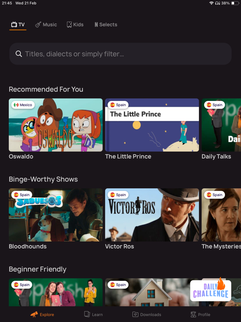 The service provides learners with hundreds of bespoke shows and movies with dual subtitles, one set in your native language and one in your target language. This might not feel like a lot, but I cannot tell you how much this helps with comprehension. My own language skills are at a decent enough point where I’d be able to follow along with the gist of some conversations, but there are words I’ve never even heard of; conjugations I’ve not yet tried. Some sentences will completely throw me, even if I try my hardest to listen in when our taxi driver answers the phone while ferrying us to our Spanish apartment.