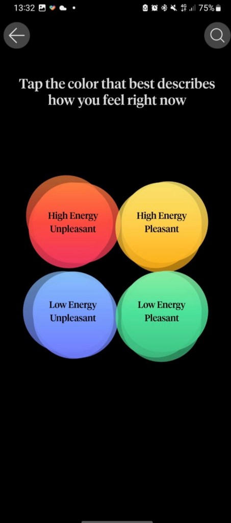 The app, called How We Feel, allows users to ‘check-in’. I will often ask students to step outside to do this in private, though you might prefer to trust them to pop their headphones in and get on with it at the back of your room. Once students have checked in, they’re presented with four options and need to select the one that they relate to the most in that situation.