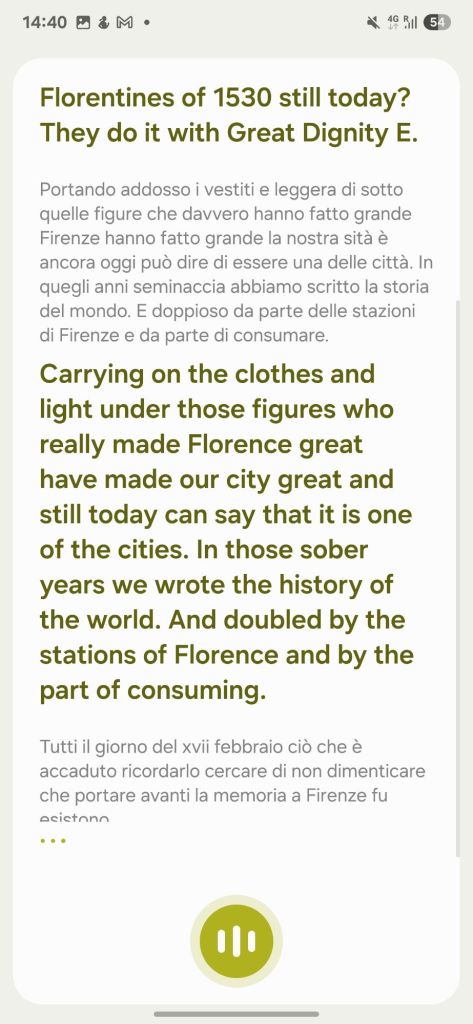 However, this all changed when exploring the Santa Croce Cathedral. While walking around, I heard drumming in the distance, when the huge doors then swung open to reveal a marching band of people coming for some sort of parade. They all entered the church and we sat down to listen. I turned on the interpreter mode on my S25 Ultra, and it gave me an, admittedly, very chaotic, live, translation. I could work out that they were from some sort of football club, celebrating their various contributions to it. My thoughts were confirmed when they left the cathedral and proceeded to play a medieval/renaissance version of the game, which involves wrestling each other to the floor while your teammates try to score.